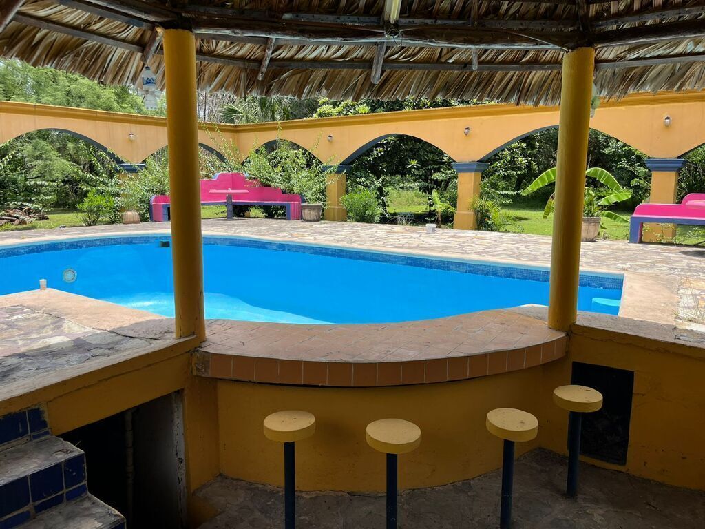 Preciosa quinta a 200 metros de la Carretera Antiguo Camino a San Mateo con alberca, palapa cerrada y techada con climas y abanicos de cielo, palapa con asador y barra, casa con dos recámaras con closets, minisplits, abanicos de cielo, 2 baños completos, cocina con barra desayunadora, alacena, estufa, refrigerador, microhondas, sala con chimenea, porche y medio baño para visitas.