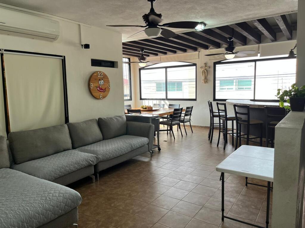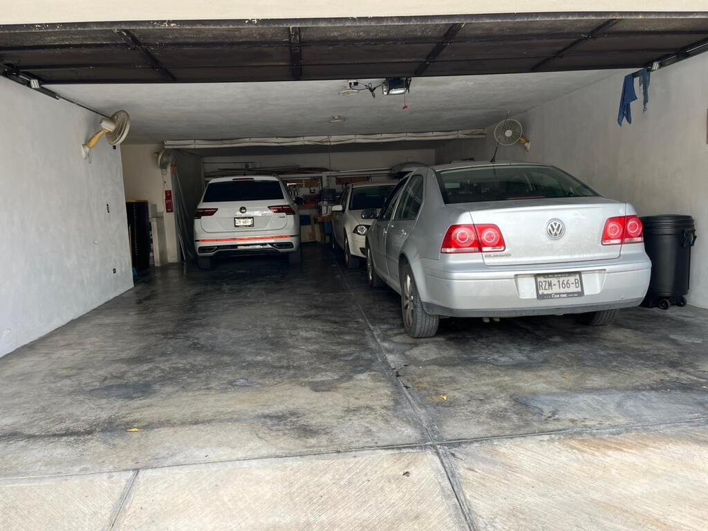 P.B.: Cochera para 4 autos, medio baño, espacio de almacén, pequeña cocineta con tarja.